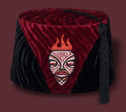 This week's fez was one of the special limited editions that debuted at Tiki Oasis last weekend. These new 2 tone fezzes feature our new Pele design on a combo of black and dark red wavy velvet and were limited to 13 fezzes. Now we only have 3 left and I want the readers of this blog to have the first chance to grab them up. These are low profile fezzes that look good on both the gentlemen and the ladies, so if you are looking to share your fez obsession with your significant other, then this is the gateway fez you've been waiting for.