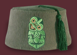 On top of all that, there are even a few variations on designs we haven't had in many years including one that was never put into proper production! Way back in 2007 I did a Fez of the Week with a Hei Tiki on black velvet. Then again in 2008 I tried a Hei Tiki on the slate green velvet we used for the Honu Fez. While I like the design I wasn't sure about the colors. This is often a sticking point for me. Well I finally got some green threads that I was happy with and we will soon have a new Limited Edition run of Hei TIki Fezzes on the green velvet you see here.