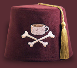 This week we bring you the coffee and crossbones, the timeless symbol of the early morning pirate. Give your co-workers ample warning not to look you in the eyes until they've placed a cup of joe in your hand. Remember, it's not an addiction, it's a career choice!