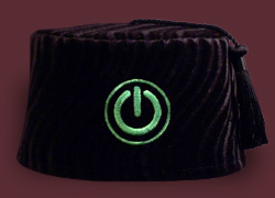 This is one of those that I just had to do eventually. The universal symbol for "power on" is proudly displayed on this low profile fez. Put this little number on when you are ready to get down to work and get things done!