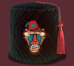 So this week we have the Baboon Fez. It's been a favorite in my sketch book for weeks and now it is in thread. There is something that has always fascinated me about baboons. Perhaps it is the colorful markings, their suspiciously advanced societies or simply their great name. "Baboon" It's just fun to say.