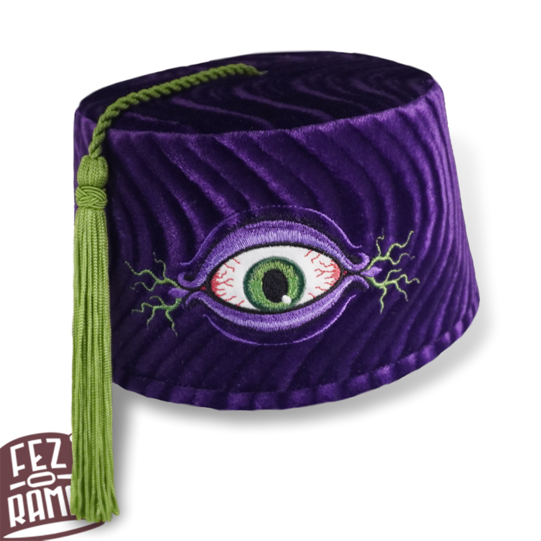 The NEW Corrupted Eye is peering out of a deep purple velvet with contrasting green veins is available as our latest Fez of the Week offering!