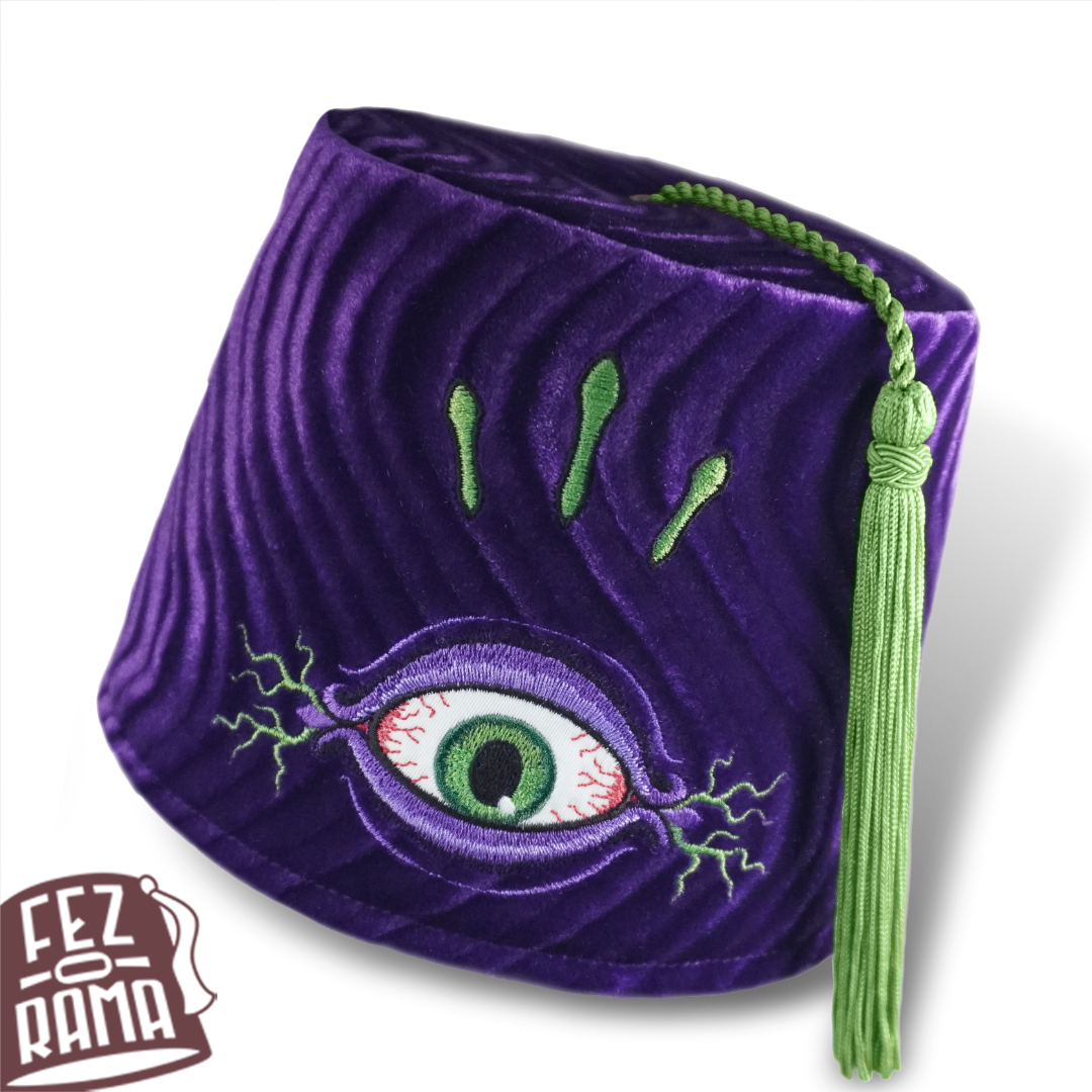Expand your perception (and your height) with this fez featuring our esoteric third eye on purple velvet!
