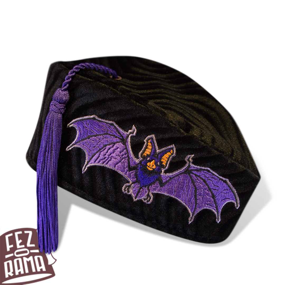 The one mammal that dares to break the bonds of gravity, a symbol of death and rebirth, and universally accepted measurement device for the level of mental health of belfries the world over; is now gracing the front of this fine velvet fez.